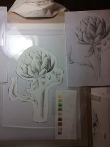 The first stage is pencil sketches. This is the “courtship” at the beginning of the relationship between artist and plant.
